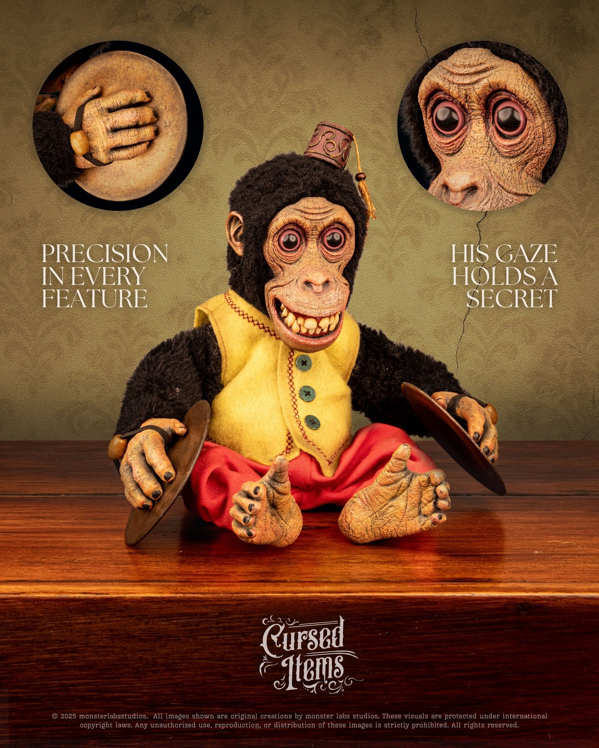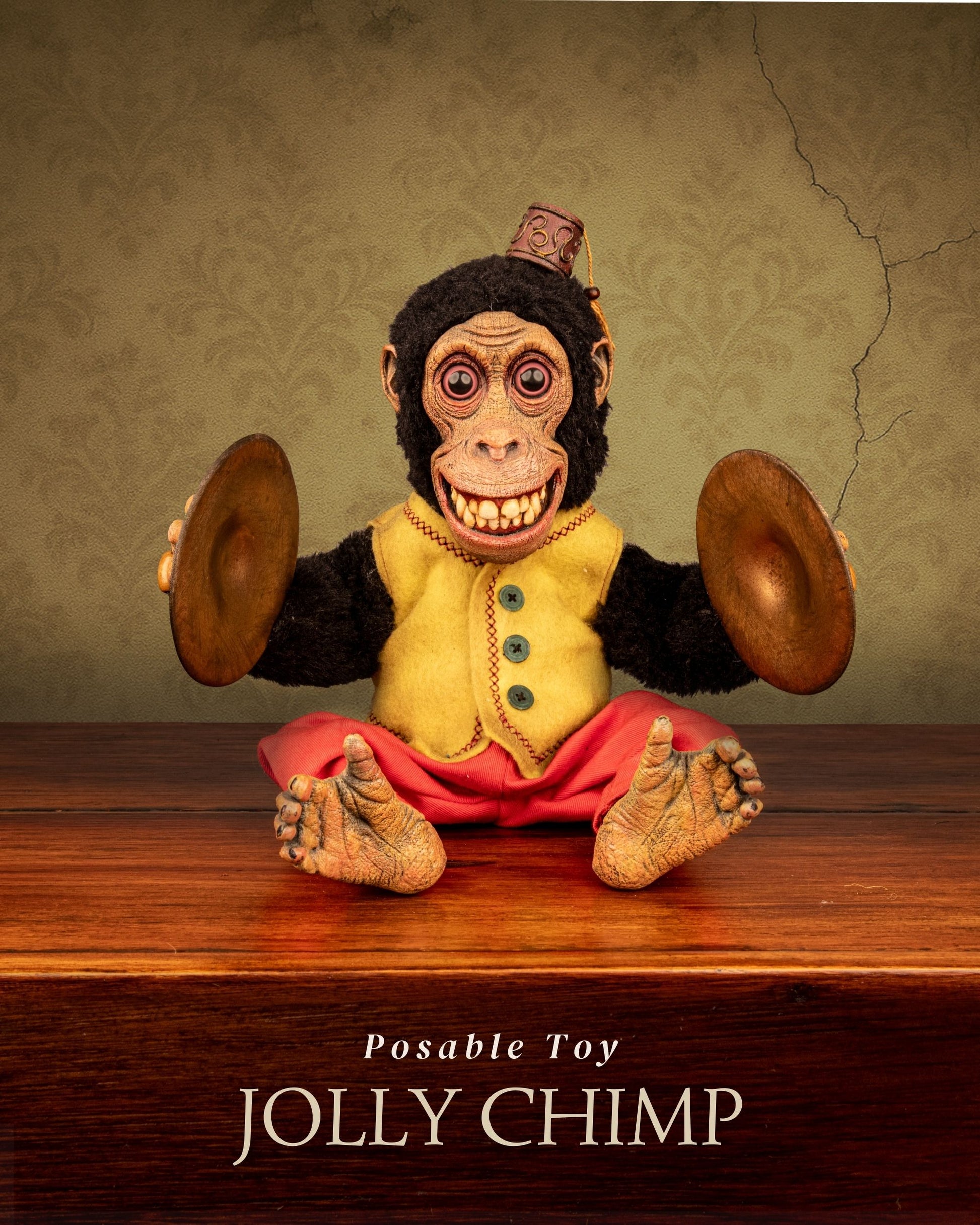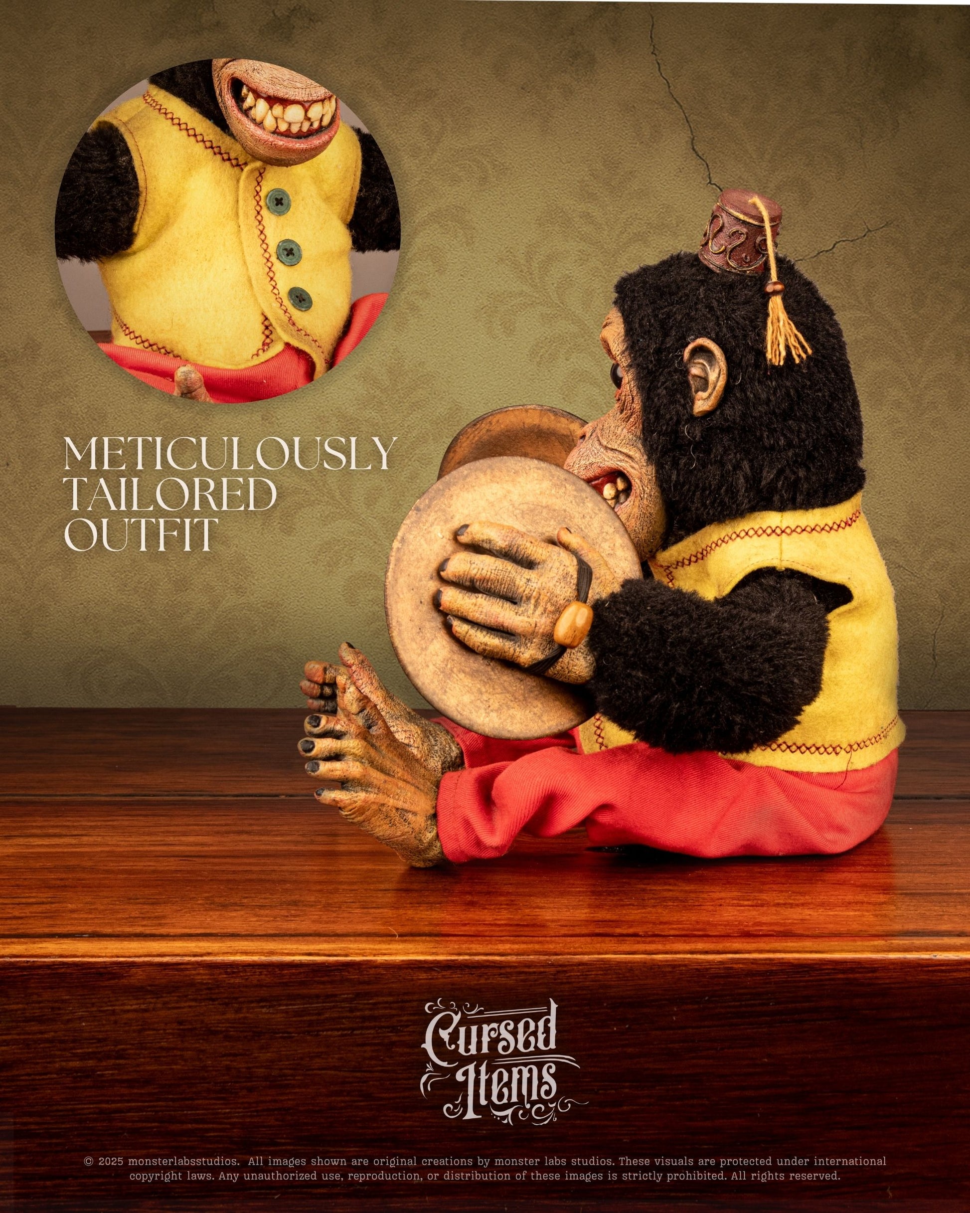 - Handmade haunted Jolly Chimp automaton replica with glass eyes and aged finish